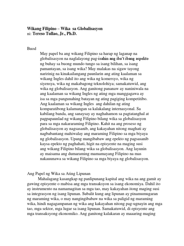 Ang Kahalagahan Ng Wikang Filipino Sa Makabagong Panahon