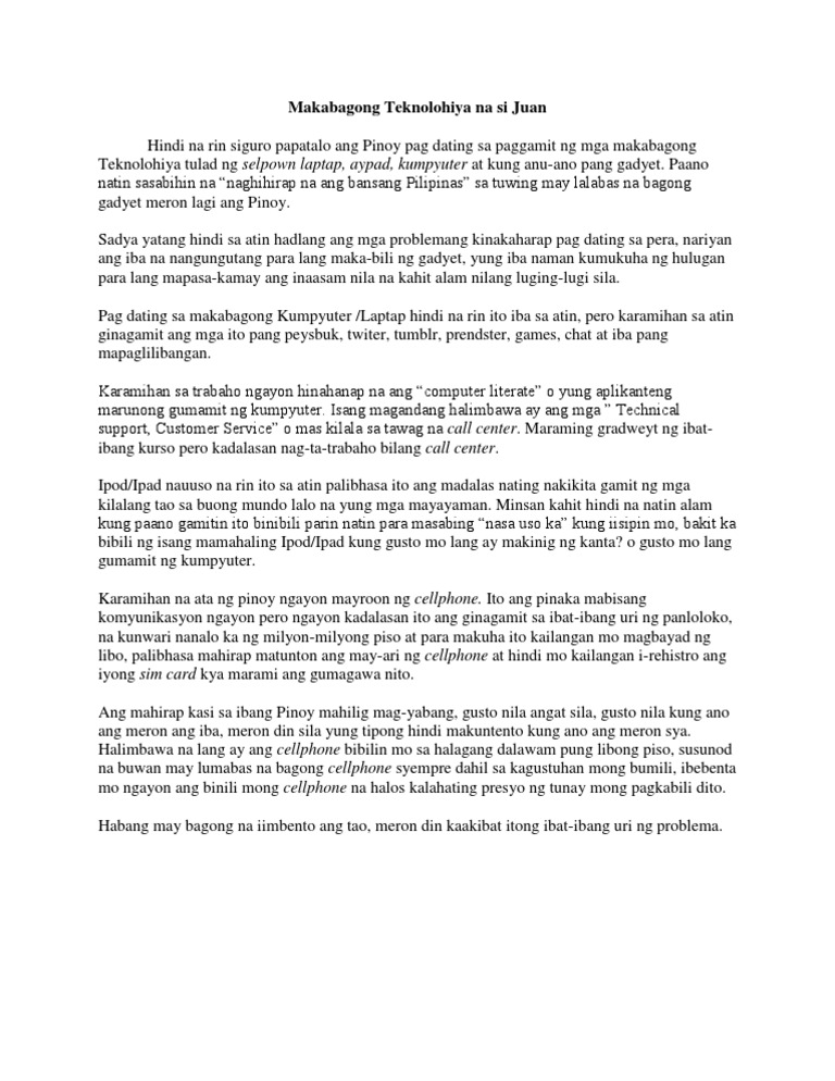 Makabagong Teknolohiya Na Si Juan