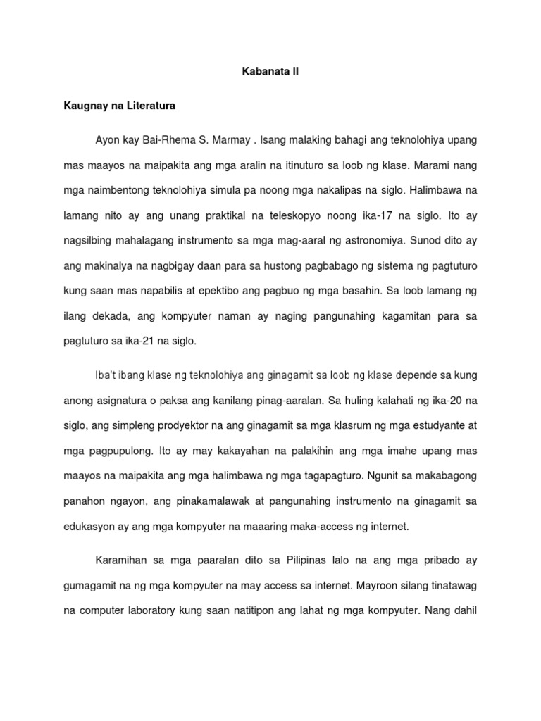 EPEKTO NG TEKNOLOHIYA SA PAG-AARAL NG MGA MAG-AARAL Isang reserts report na iniharap sa mga dalubguro bilang pangangailangan para sa asignaturang Fil109 ni DONALD COGO KOLEHIYO NG SKSU KALAMANSIG SULTAN KUDARAT ENERO 10 2014 KABANATA 1 PANIMULA Tungkulin ng mga kabataan ang mag-aral kapag ang mga kabataan ay napapagud na sa kanilang. Ang teknolohiya ay nagbibigay hindi lamang ng kaalaman at libangan sa mga.