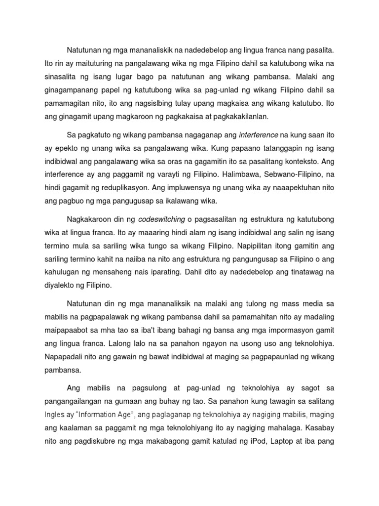 Ang Papel Na Ginagampanan Ng Wikang Filipino Sa Mundo Ng Teknolohiya